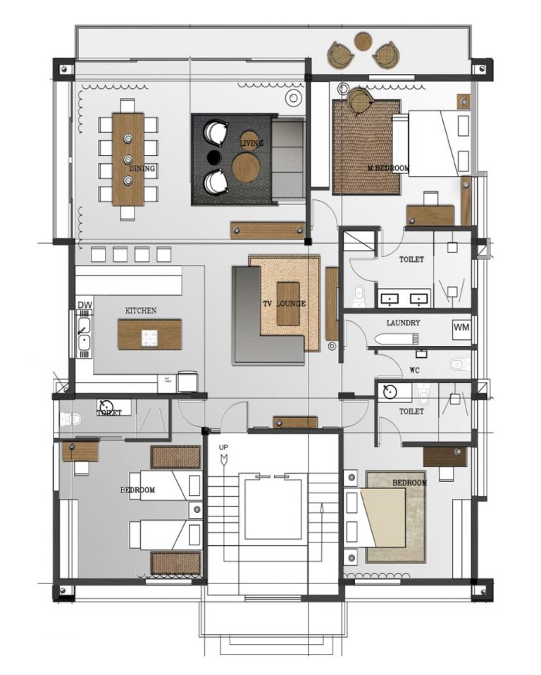 The selection of fine natural elements in the design is fitting to this location which is fringed by a pristine white beach and natural lush vegetation.