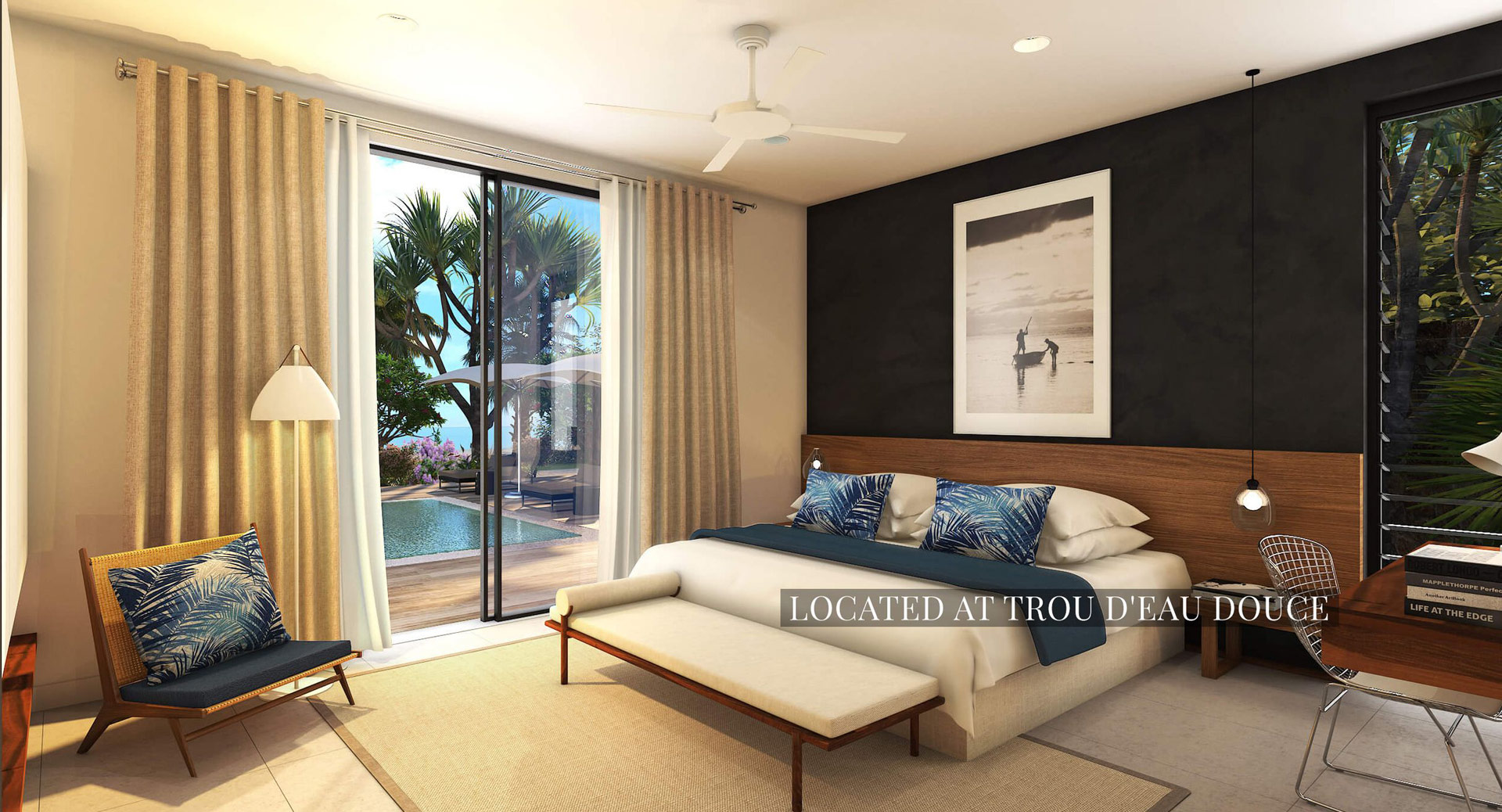 Lorlagon & Lorlabaie is a brand-new residential development nestled in the soothing sounds of the ocean breaking on the reefs nearby. It benefits from an unobstructed gorgeous view on the magnificent bay of Trou D’Eau Douce, offering a heart-warming scene. The bay connects to the south east lagoon with it’s ever changing shades of blue and turquoise all the way to Blue Bay flanked by majestic mountains on one side and a string of islands on the reef side.